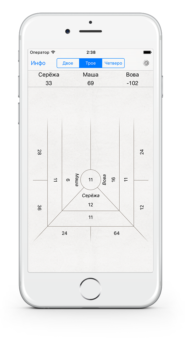 Максимально расширенные конвенции позволят настроить игру на любой вкус. Кроме традиционной игры втроём есть возможность сыграть Гусарик, и в ближайшее время будет добавлена игра на четверых