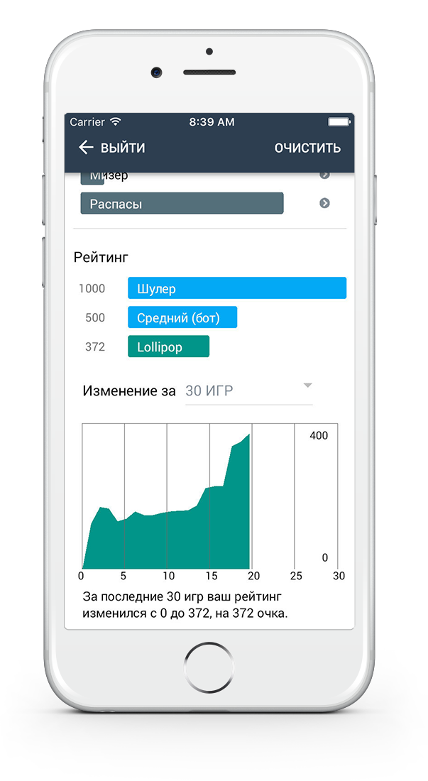 Собирается вся статистика по всем сыгранным партиям. На основе статистики строятся метрики, которые позволяют оценить рост вашего уровня мастерства в игре преферанс.