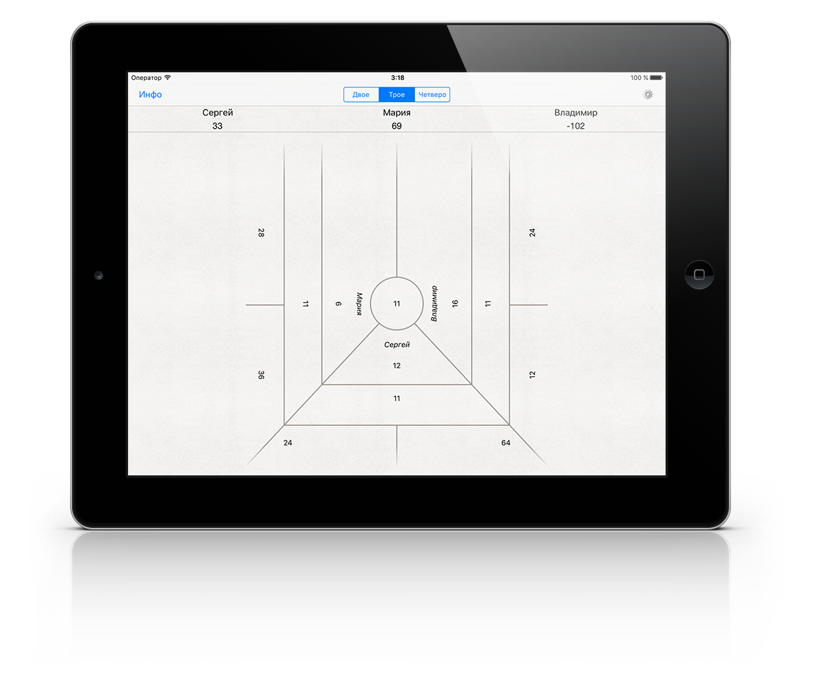 С его помощью можно рассчитать пулю для двух, трёх и четырёх игроков на iPhone или iPad.